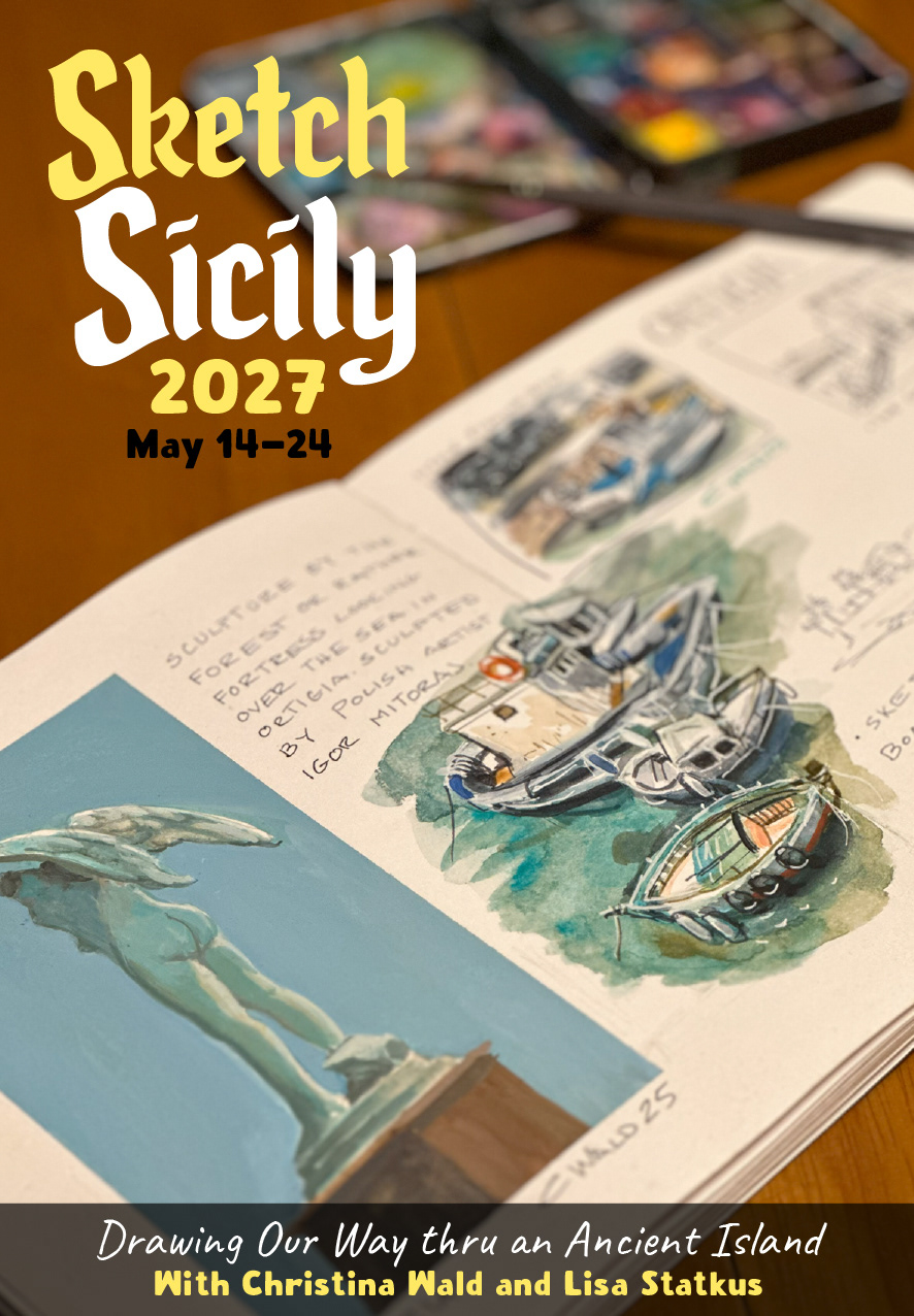 I also do travel workshops and sketch tours. Click the link above for details.